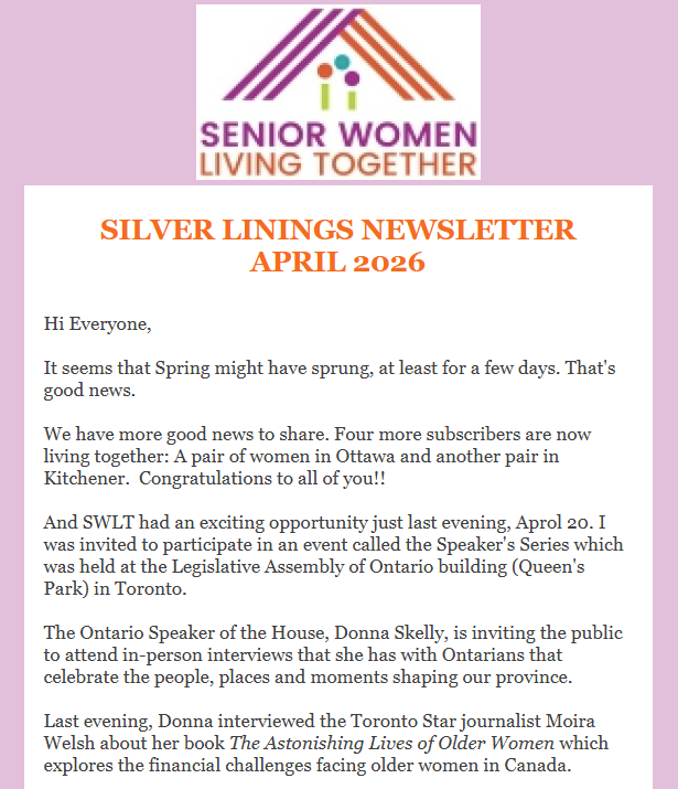 Click Here to view the full Senior Women Living Together April Newsletter!