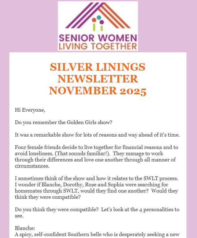 Click Here to view the full Senior Women Living Together November Newsletter!